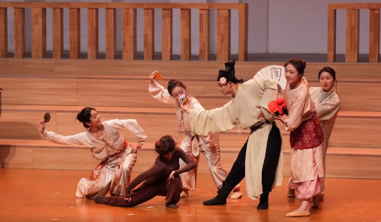 舞蹈《花间·三彩》将簪花的雅韵与三彩的魅力巧妙融合,创造充满古韵与诗意的舞台。