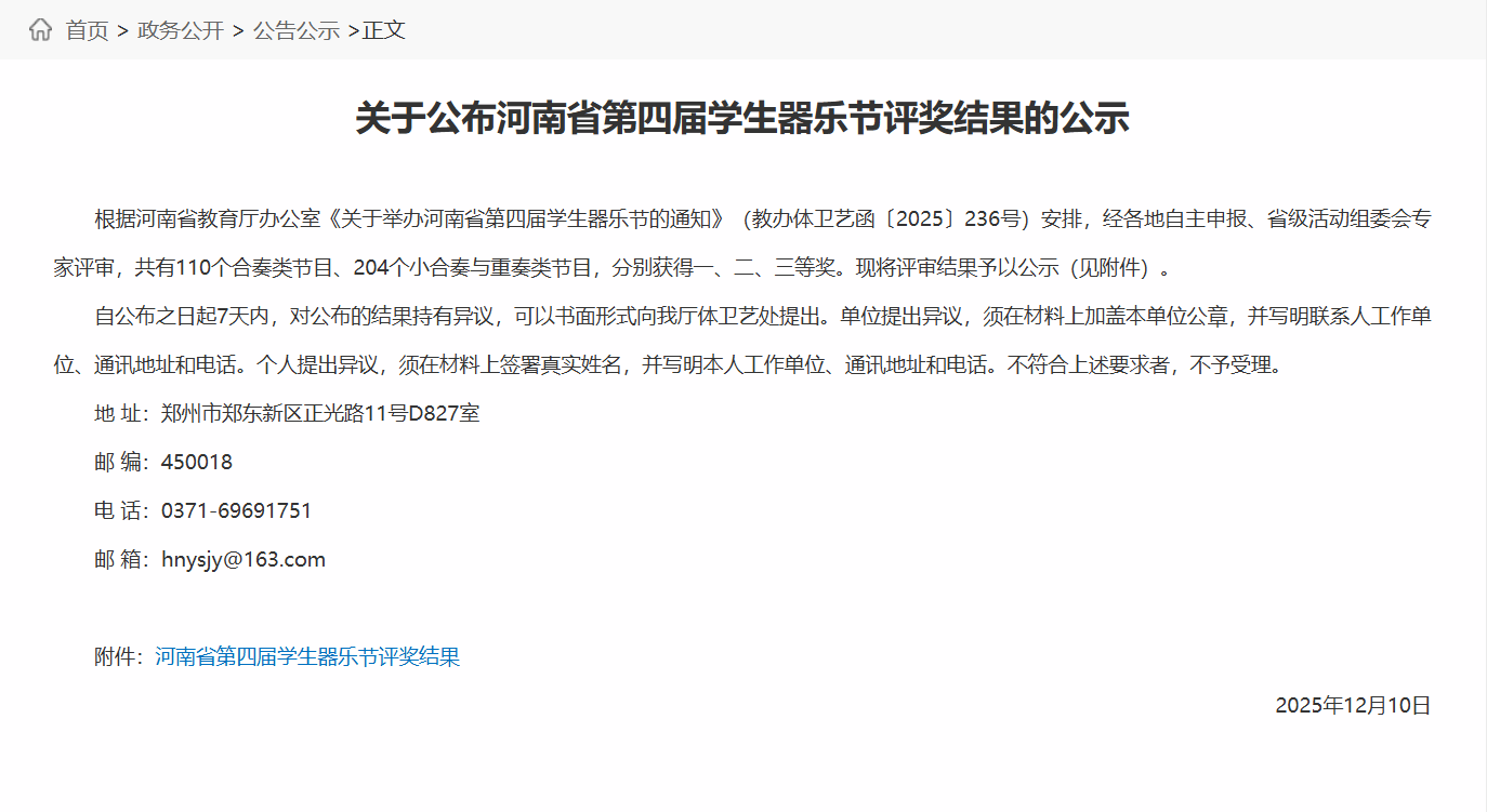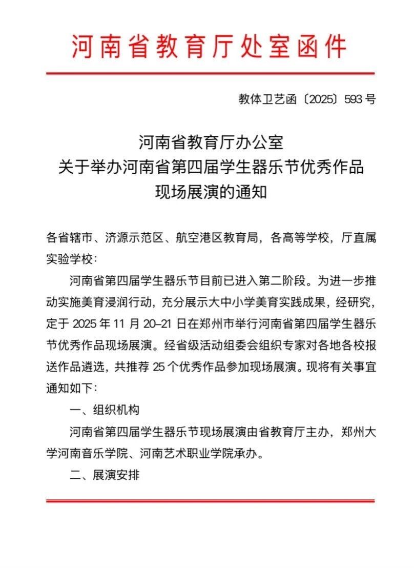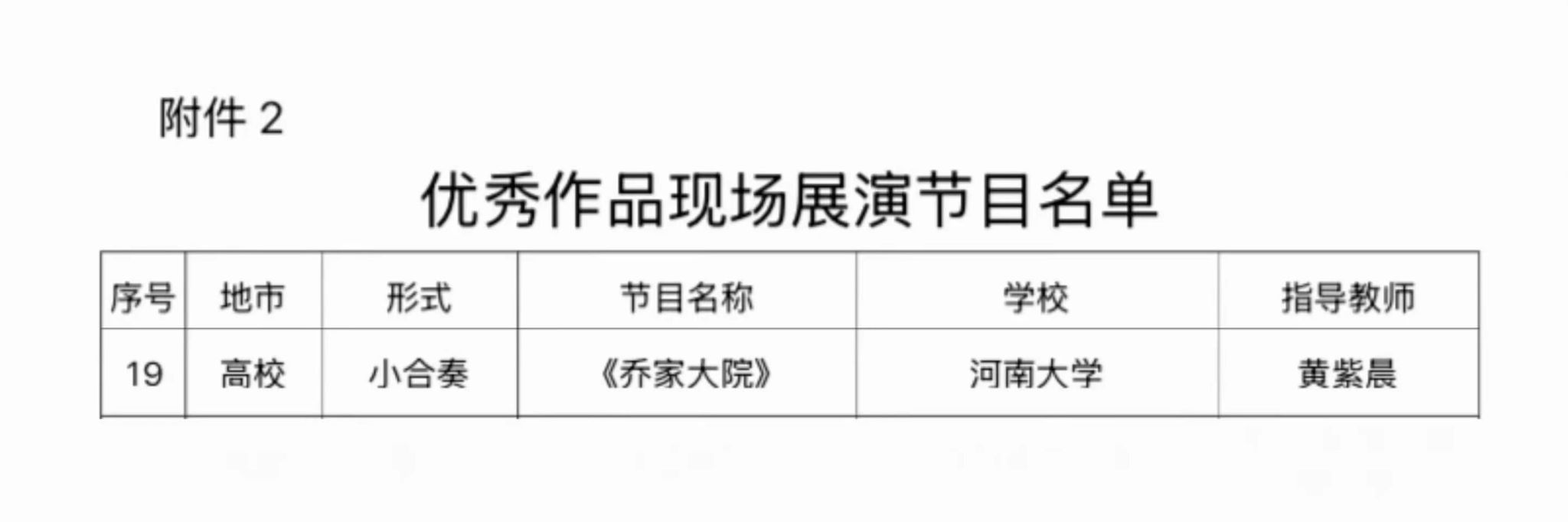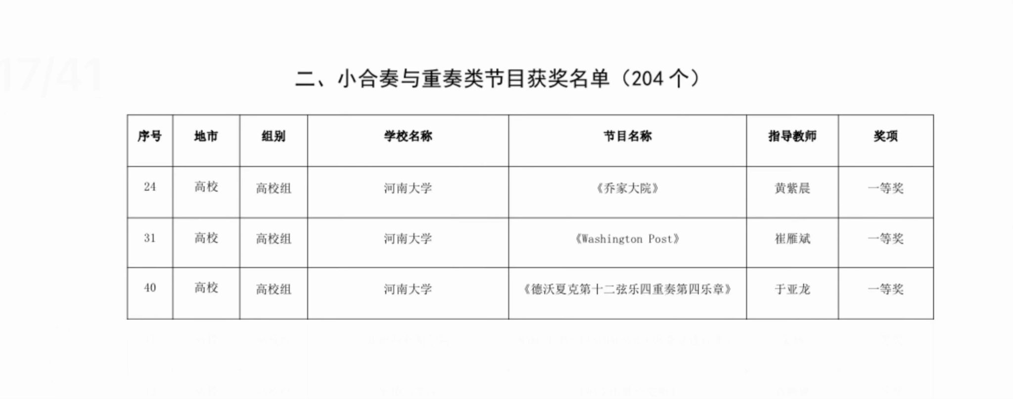 近日,由河南省教育厅主办的河南省第四届学生器乐节圆满落幕。在本届器乐节中,我院师生再创佳绩,荣获一等奖3项、二等奖3项,充分展现了我院在器乐艺术实践教学和人才培养方面的卓越成效。