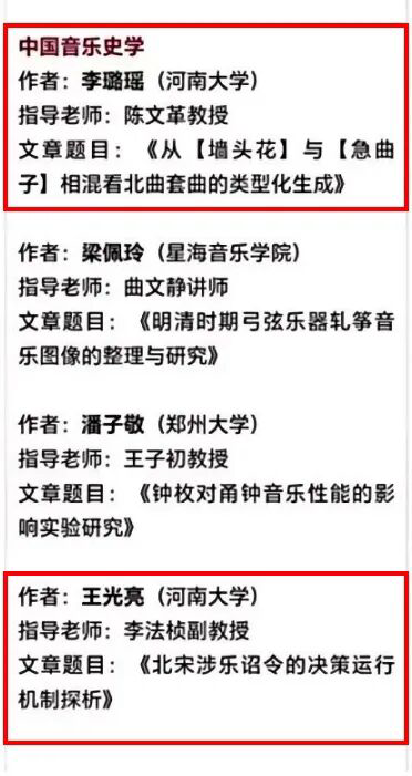 《中国音乐》编辑部举办了“第六届音乐学硕博研究生优秀学位论文评选”活动。我院陈文革教授指导的硕士研究生李璐瑶、李法桢副教授指导的硕士研究生王光亮的论文,在“中国音乐史学”组别中脱颖而出,荣获“优秀学位论文”。