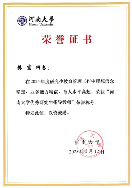发布《关于表彰研究生教育先进团队和个人的决定》。我院陈文革教授领衔的研究生导师团队荣获“优秀研究生导师团队”称号,樊霞副教授获评“优秀研究生指导老师”。