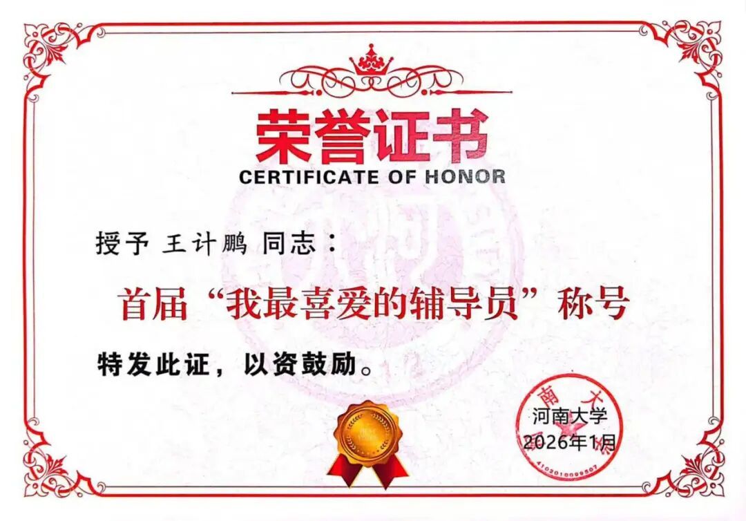 在王计鹏的精心指导与严格要求下,他所带的2023级实现了学业、素质、创新的全面突破。从2025年5月的校级二等奖,到6月的一等奖,再到9月荣获中国国际大学生创新大赛河南赛区三等奖,他指导的费雪儿、冯笑涵同学实现了赛事成绩的“三级跳”,极大地提升了学生的创新精神和实践能力;在他的精心带领下,整个2023级展现出积极向上、团结奋进的良好风貌,荣获2024-2025学年色情片