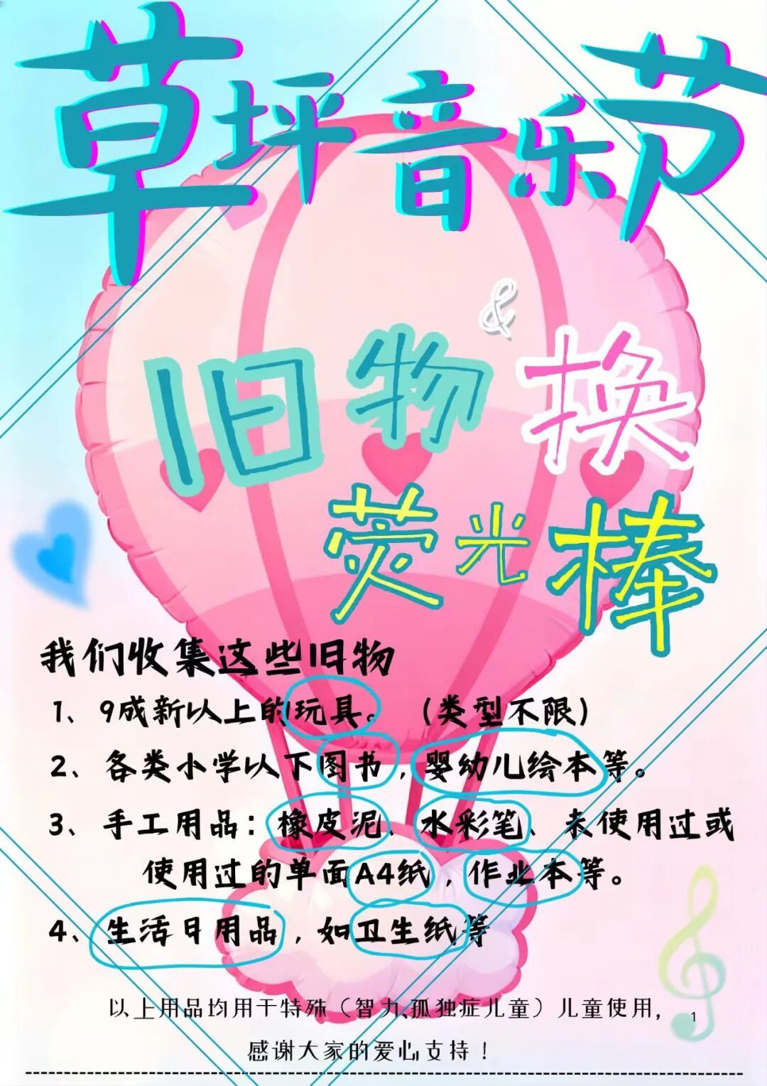 这一次,我们不止有音乐,更有温暖的“交易”。我们邀请您,用一份闲置的爱心,来兑换一抹闪耀的星光——现场捐赠爱心物品,即可免费领取荧光棒,让您的爱与音乐一同在夜空下闪耀!